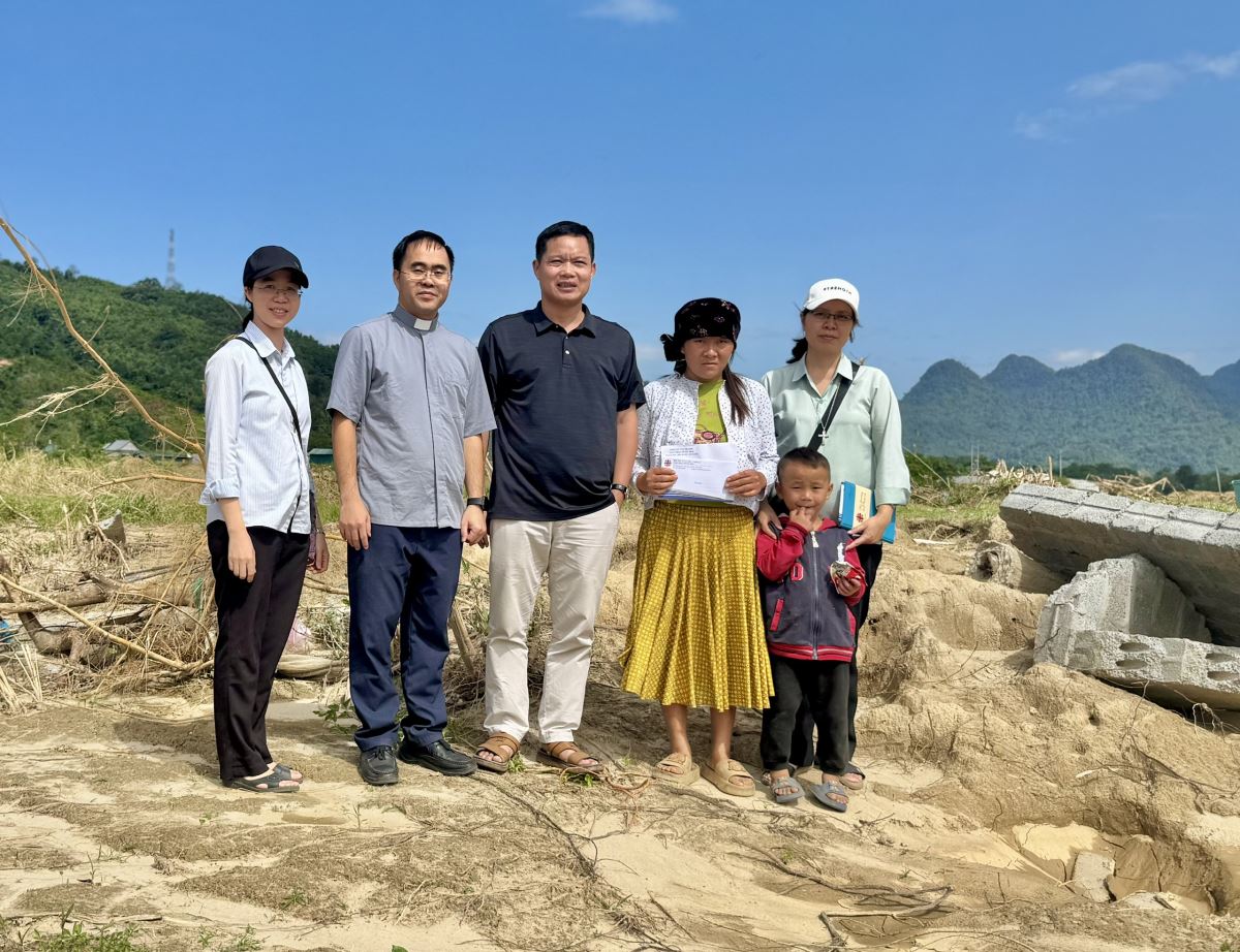 Trước tình hình đó, ngày 22/10/2025, Cha Phó Giám đốc GB. Nguyễn Văn Hùng cùng Quý Soeurs Văn phòng Ban Bác ái Xã hội – Caritas Giáo phận Hưng Hóa đã đến xã Vị Xuyên, tỉnh Tuyên Quang để thăm hỏi và hỗ trợ các hộ dân chịu ảnh hưởng nặng nề sau bão. Đồng hành cùng đoàn có Cha Giuse Cấn Xuân Bằng, Chính xứ Giáo xứ Tân Quang.