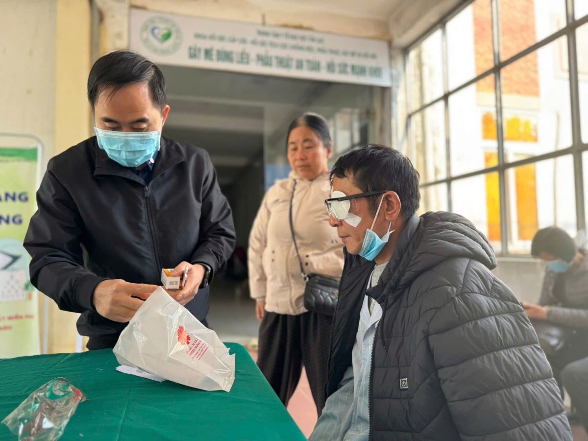 Các bệnh nhân sau khi phẫu thuật được cấp thuốc và kính bảo hộ miễn phí. Nhân viên Caritas cũng dặn dò kỹ lưỡng từng bệnh nhân về việc chăm sóc và bảo vệ mắt.