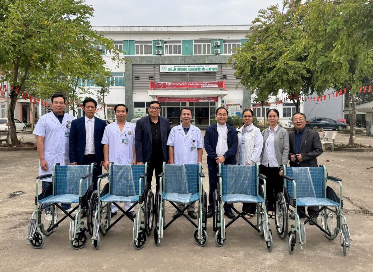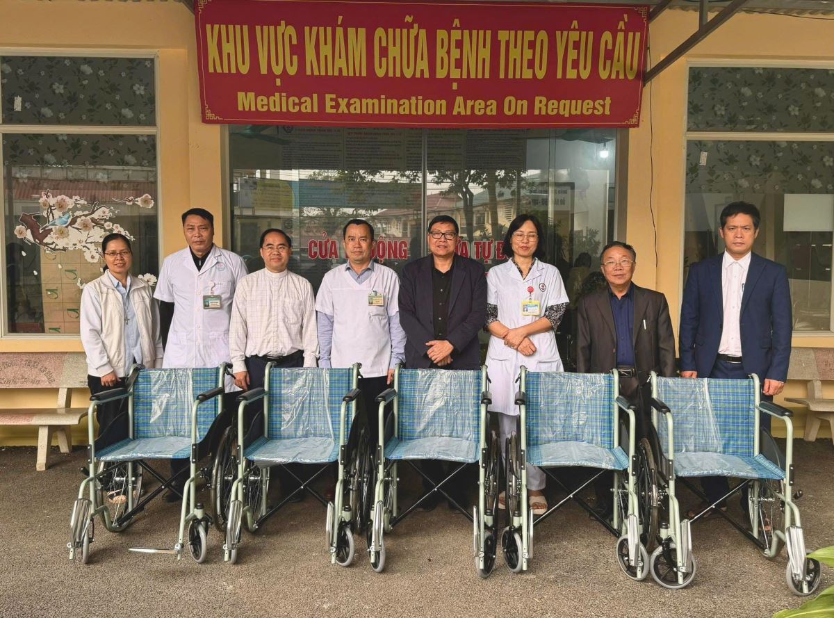 Để hỗ trợ tốt nhất cho công tác chăm sóc bệnh nhân, Caritas Hưng Hóa đã trao tặng mỗi Trung tâm Y tế khu vực 5 chiếc xe lăn. Món quà này nhằm hỗ trợ những bệnh nhân có sức khỏe yếu hoặc gặp khó khăn trong việc di chuyển, giúp quá trình thăm khám và điều trị trở nên thuận tiện, an toàn hơn.
