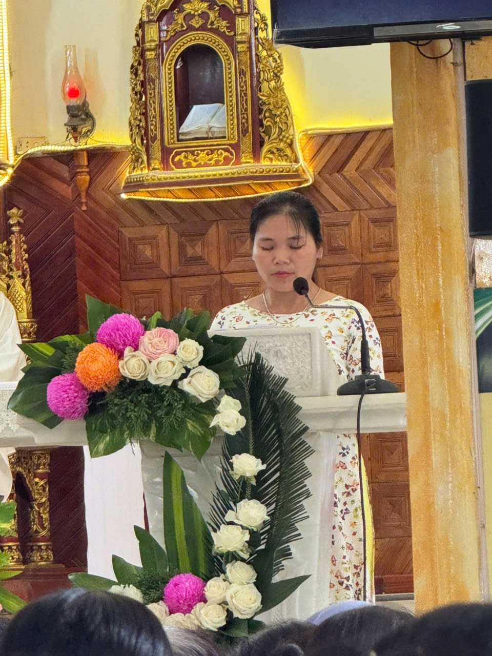 Trong bài giảng, cha Gioan Baotixita mời gọi cộng đoàn noi gương Thánh Bổn Mạng: sống yêu thương và bác ái với người khác qua những hành động thăm viếng, món quà bé nhỏ mà mỗi người dành cho những người khác. Cha chia sẻ kinh nghiệm của chính bản thân mình: “