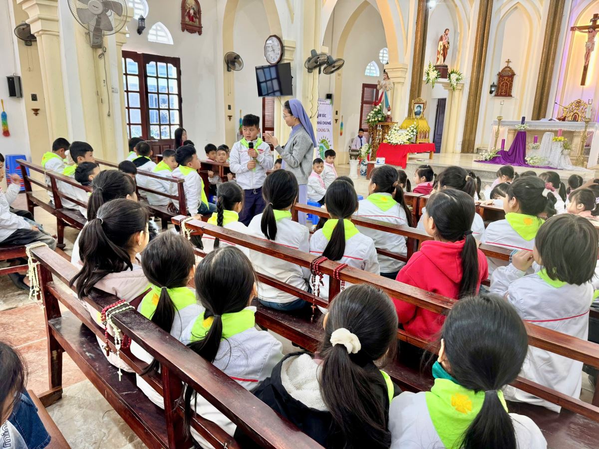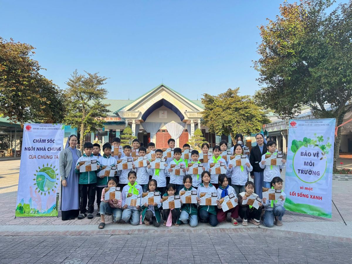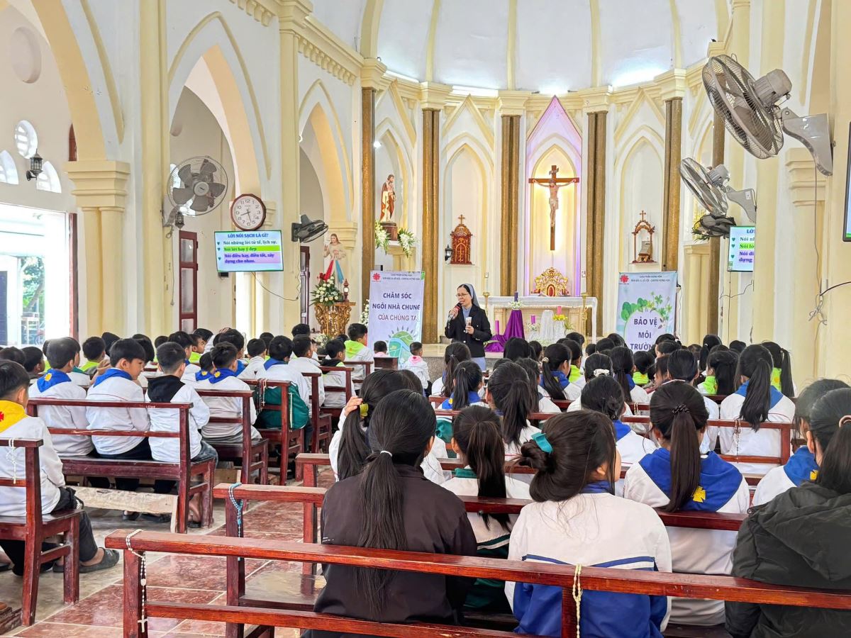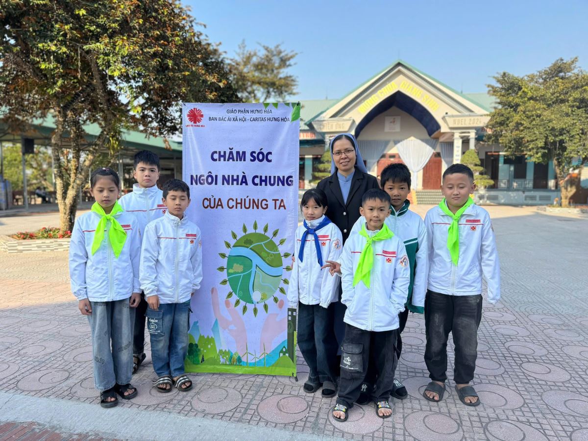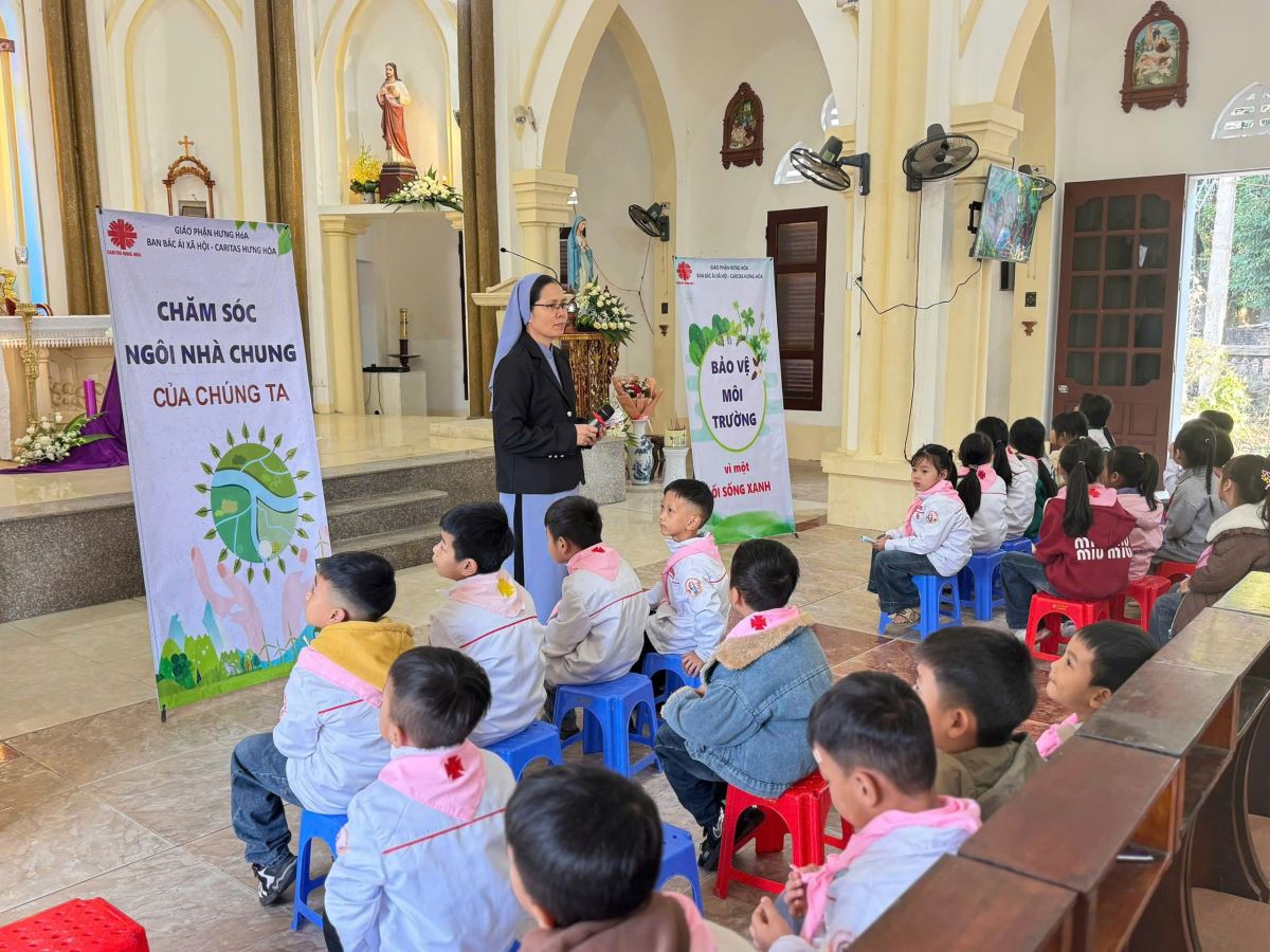 Hưởng ứng lời mời gọi của Đức Thánh Cha về tinh thần chăm sóc Ngôi Nhà Chung và nhận lời mời của cha Phero Tạ Duy Tài - chánh xứ giáo xứ Chiêu Ứng, sáng Chúa Nhật ngày 30 tháng 11 năm 2025, Quý Sơ văn phòng Caritas Hưng Hóa đã đến gặp gỡ và chia sẻ về “Bảo vệ môi trường” và “Nâng cao nhận thức phòng chống buôn bán người” cho gần 200 em thiếu nhi tại giáo xứ. Với mong muốn khơi dậy nơi các em ý thức sống xanh – sạch – lành mạnh ngay từ những hành động nhỏ bé mỗi ngày.