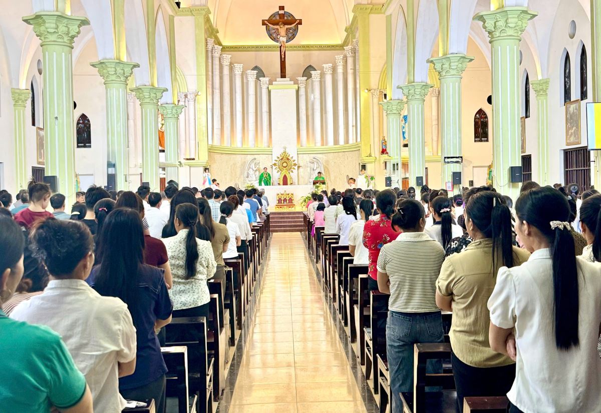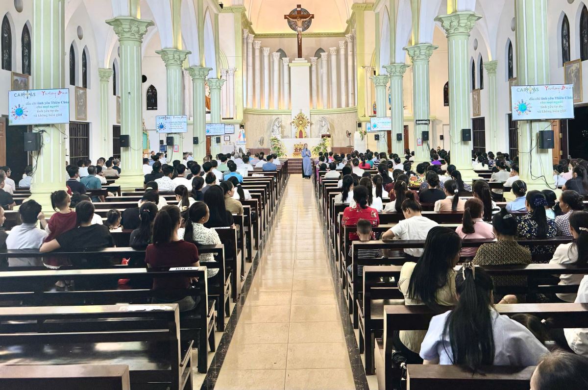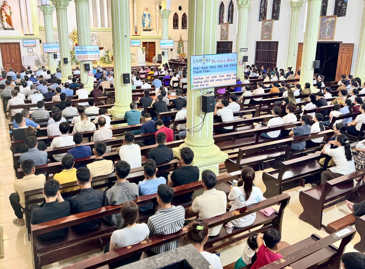 Trước Thánh lễ buổi tối, CHH được gặp gỡ 198 hội viên và tân hội viên Caritas để chia sẻ về linh đạo và điều lệ Caritas Việt Nam.