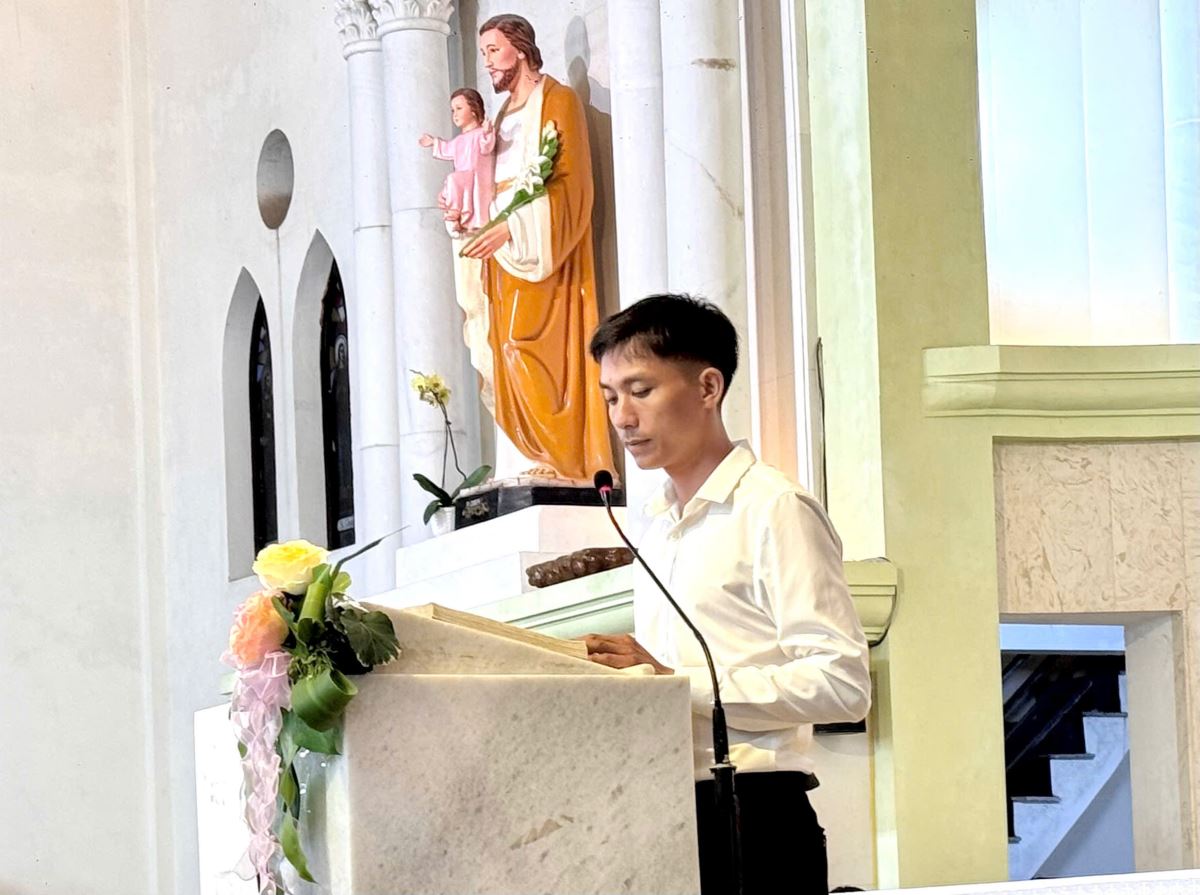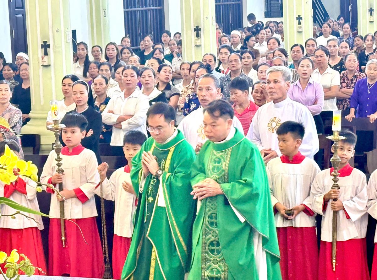 Tiếp theo là Thánh lễ tiếp nhận các tân hội viên do cha chánh xứ Gioan Baotixita Kiều Văn Phú và cha Phó Giám đốc Caritas - Gioan Baotixita Nguyễn văn Hùng cử hành.