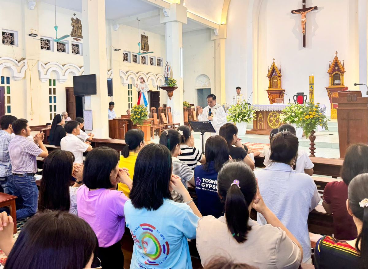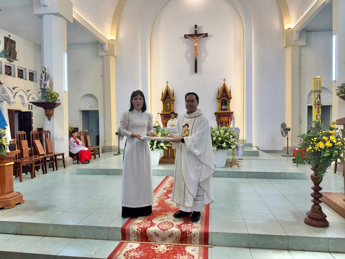 Tiếp đó, Thánh lễ tiếp nhận các tân hội viên đã được cử hành cách long trọng và sốt sắng do Cha Gioan Baotixita Nguyễn Văn Hùng, Phó Giám đốc Caritas Hưng Hóa, cùng Cha phó Giuse chủ sự. Trong Thánh lễ, các hội viên cũng được trao thẻ hội viên như dấu chỉ thuộc về Caritas Việt Nam và được mời gọi sống đức ái cách cụ thể trong đời sống hằng ngày.